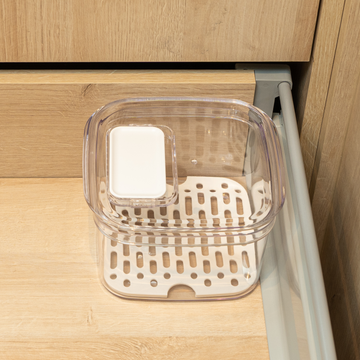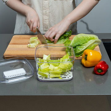 Extend the life of your berry, fruit, vegetables, food with our innovative acrylic Veggie Keeper, the built in elevated tray and advanced air circulation vent technology that regulates airflow, preventing moisture and keeping them crisp and flavorful for a longer duration.