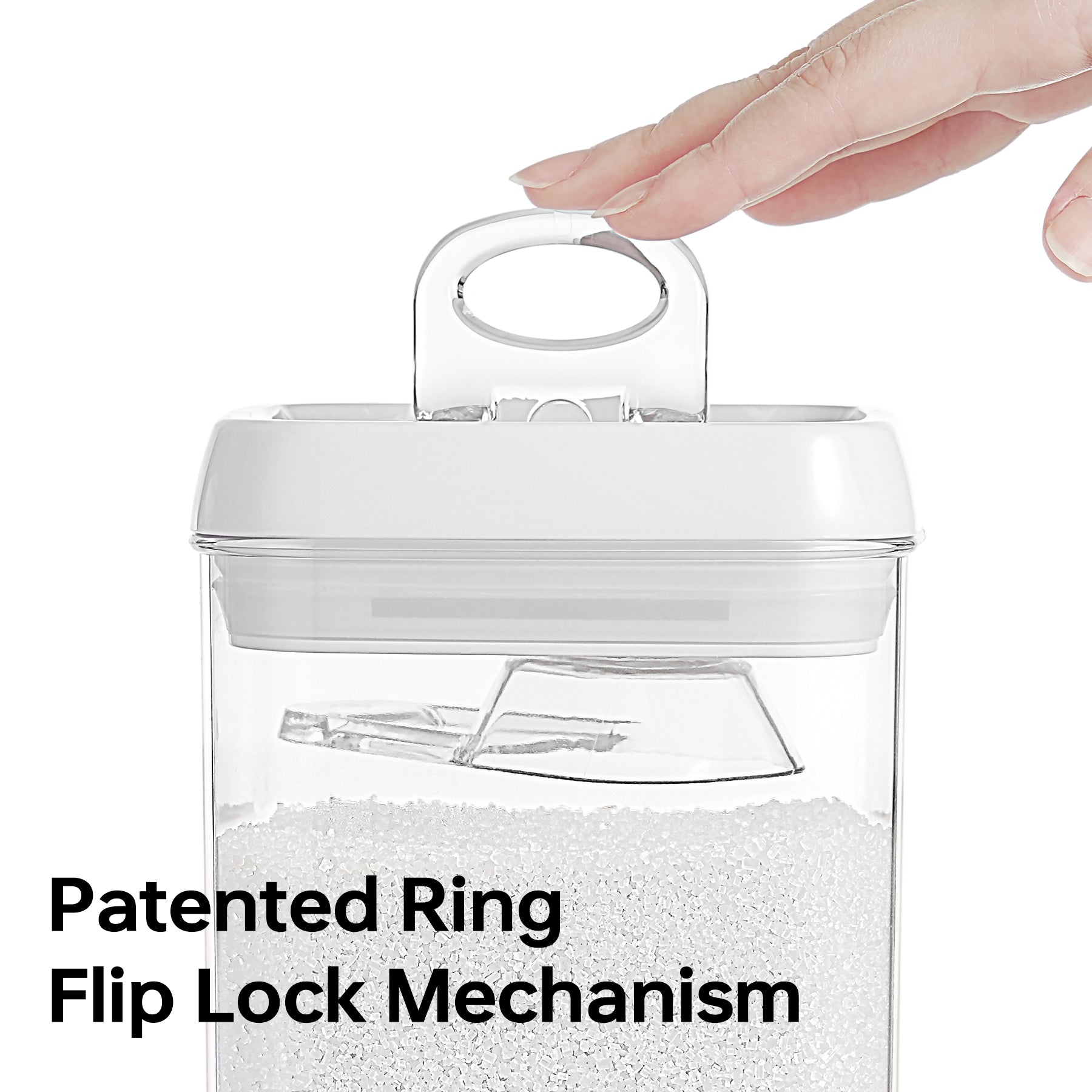 Patented flip-lock lid provides a strong airtight seal to keep contents dry and fresh longer. Ideal for reducing food waste.