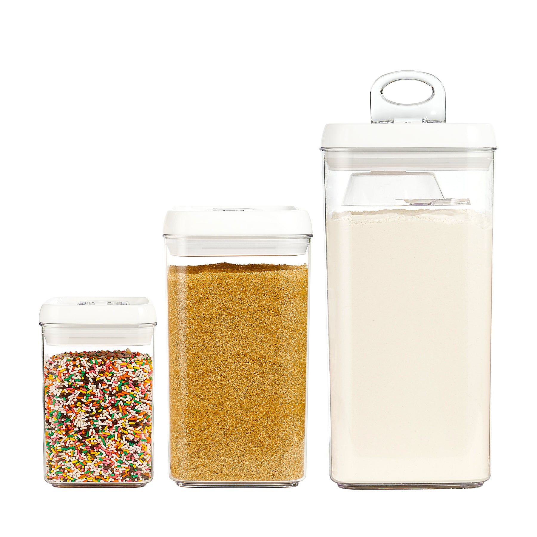 Perfectly sized for oats, rice, flour, sugar, protein powder, pet treats, snacks, and more. Also great for organizing makeup, crafts, or office supplies.