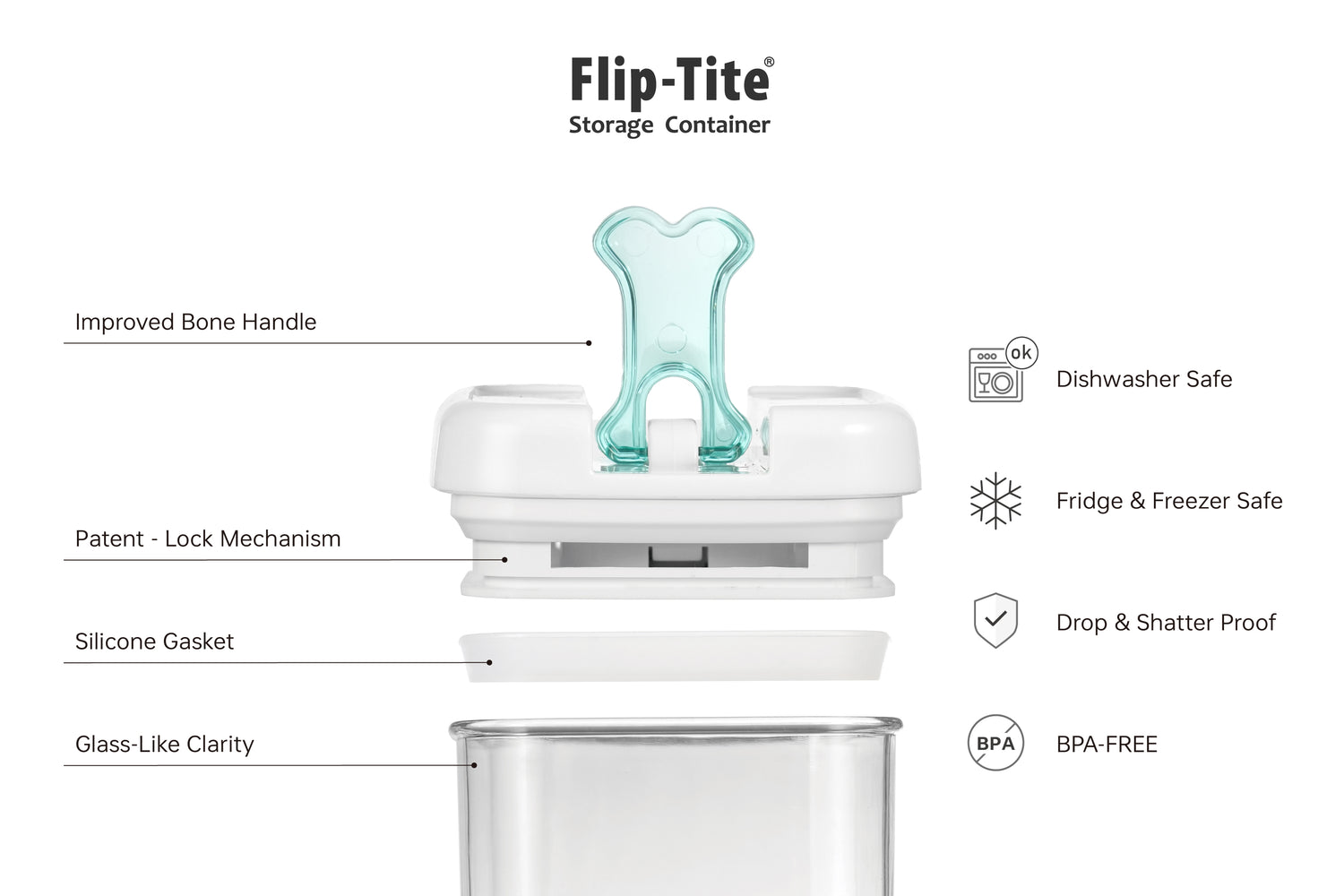 Felli Flip-Tite container is lightweight, durable and shatterproof which made from BPA Free plastic, SAN, universal recycling symbol #7, making them ideal for food storage and will not release any harmful chemicals. It’s safe for everyone.