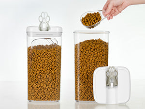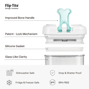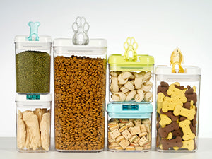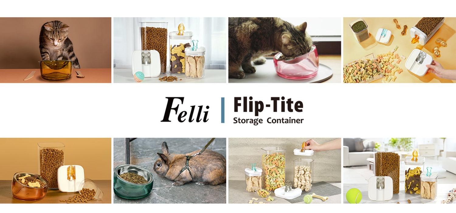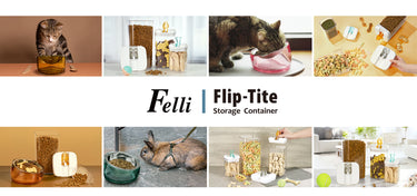 Keep your pet food fresh and organized with the Felli Flip Tite Pet Food Storage Container featuring a Paw handle. Designed for Cat, Dog, Bird, and small animal food and treats, this BPA FREE, Airtight container prevents moisture, locks in freshness, and features a stackable, space saving modular design. Available in various sizes for dry kibble, biscuits, seeds, and snacks.