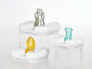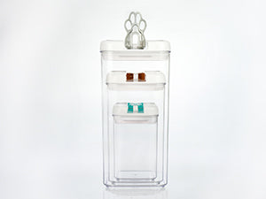 Containers are designed to be stacked firmly on top of each other to save space in your pantry, fridge, desk, room, kitchen countertop, cupboard, and cabinet shelves. Our Regular sized containers can be stacked firmly with Rectangular sized containers to help you max out space efficiency.